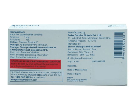 Rapamycine (Rapacan) 1 mg is beschikbaar als tabletten. Volg deze regels om het meeste uit de behandeling met Rapamycine te halen: