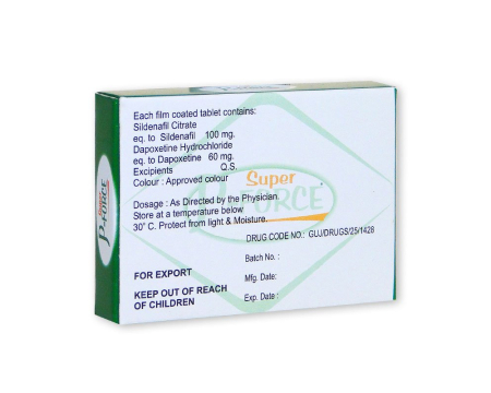De formule van het geneesmiddel is uniek in die zin dat het twee verschillende werkzame stoffen bevat in plaats van één, die parallel werken. Vanwege de nieuwe combinatie van Sildenafil/Dapoxetine (100 mg/60 mg) wordt Super P Force tot een aparte klasse geneesmiddelen gerekend.